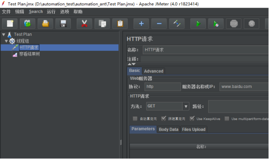 3. 创建接口请求,脚本保存为Test Plan.jmx