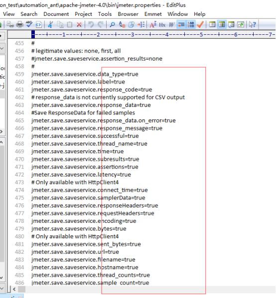 6. 还需要修改bin目录\jmeter.properties配置文件,才能在详细报告中展现请求值和响应结果,修改如下,把false改成true: