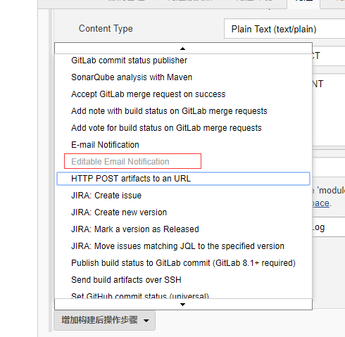 3. 配置jenkins任务,在构建后操作》添加Editable Email Notification