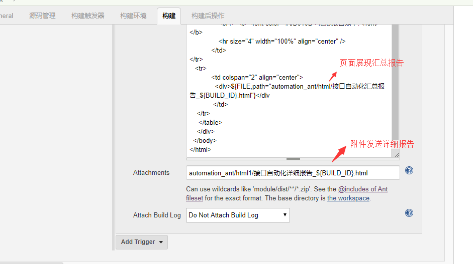 此处对Triggers进行了细化配置,读取自己专门配置的报告格式,不读取系统配置:
