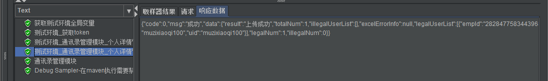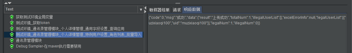 1. 本次选择批量导入案例接口进行调试,jmeter执行结果请求如下: