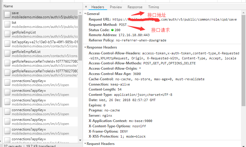 2. 输入必填项,点击保存按钮,接口请求显示如下,根据经验可以判断新增请求接口类型为post,或者请求名称save,还有请求参数可以找到新增的接口如下:
