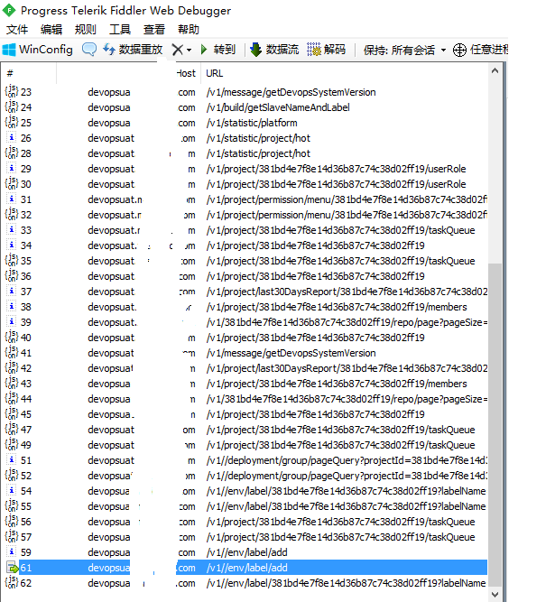 2. 本次录制从登录系统到新增标签产生的请求,录制完成,点击捕获字样暂停