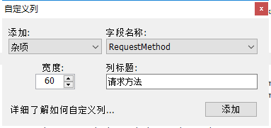 5. 添加选择杂项,字段名称选择RequestMethod,列标题输入请求方法,点击添加按钮