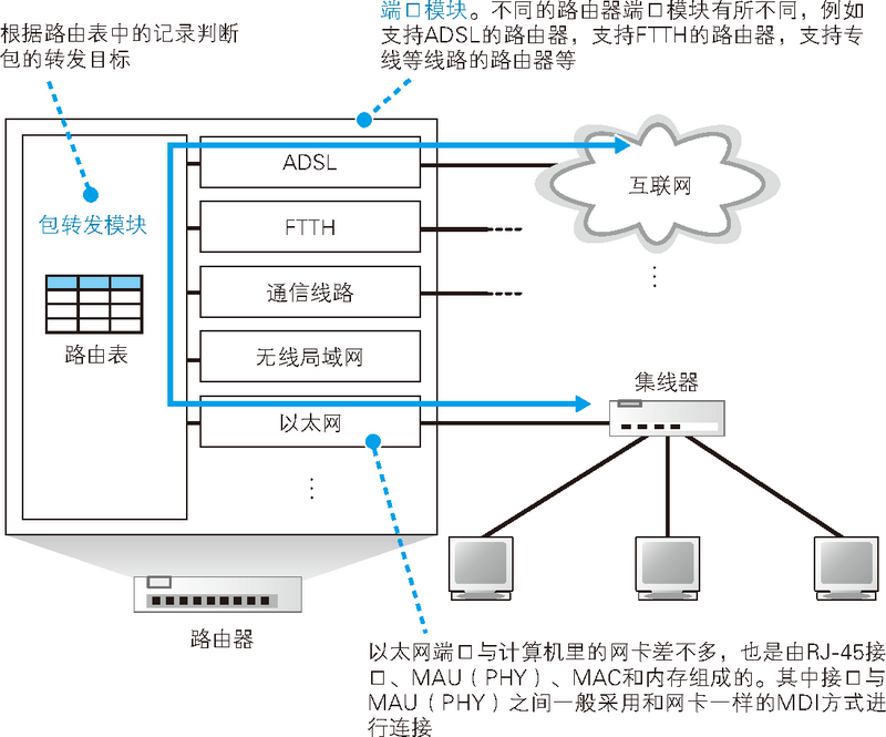路由器(IP)负责包送达到通信对象的整体过程,而其中将包传输到下一个路由器的过程则是由以太网(交换机)来负责的。