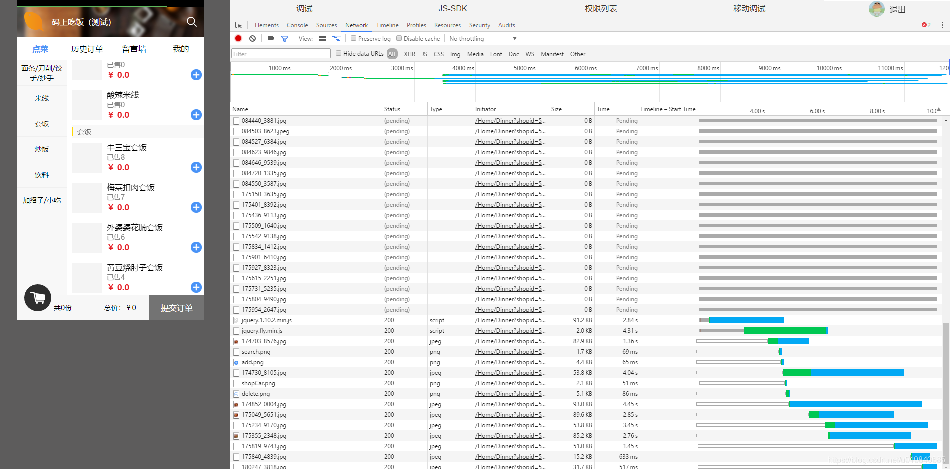 可以清楚看到图中红线框住部分全部加载需要40.28s左右,此加载速度还是为非忙时段的加载速度,如果中午高峰时段,用户增多可能加载速度更慢,如果每个客户中午点餐的时候都需要等待这么长时间的图片加载时间,那么产品的体验一定的极差的,所以有了优化图片加载的本文