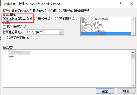 2、保存txt时设置为windows默认,按下设置后选择保存即可,最终即可得到想要的文档内容了。