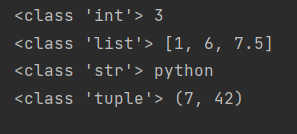 r1 = eval('1 + 2') print(type(r1), r1) r2 = eval('[1, 6, 7.5]') print(type(r2), r2) r3 = eval('"python"') print(type(r3), r3) r4 = eval('7, 42') print(type(r4), r4)
