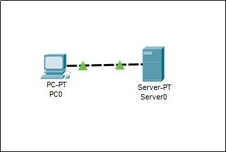 实验的拓扑结构为简单的直线结构,包含一个客户端和一个服务端,客户端向服务端发送查询报文,服务端返回域名解析后的IP地址。