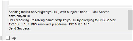 一开始将服务端的邮件接受和发送服务器配置和客户端一致,结果是服务端发送了DNS域名解析报文给客户端,但客户端不能解析域名所以显示招不到接受服务器导致了错误,所以后面直接改成了IP地址