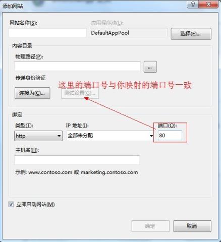 (3)经过上面的步骤还没有完,要把你发布的Web网站的端口号设置为你上个步骤设置的端口号,如下图所示: