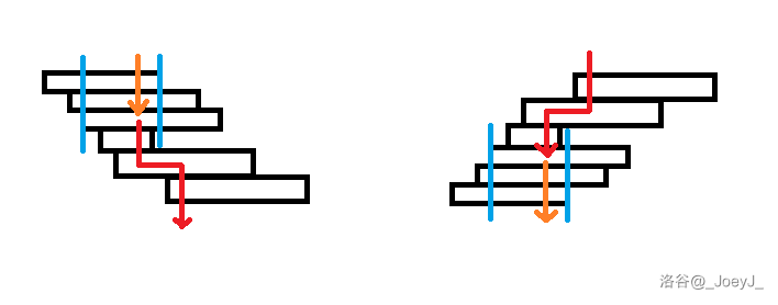 对于这两类连续段,我们考虑现在起点和终点分别在这段区间的首位两个区间时对答案的横向贡献: