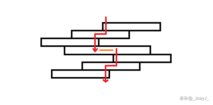 区间无交时,我们先计算出通过这段区间的最短路的起点(终点),发现从起点(终点)先走到最短路的起点(终点)肯定不劣,所以直接计算起点(终点)走到最短路的起点(终点)的距离。