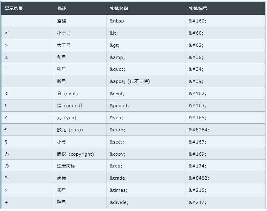 HTML字符实体