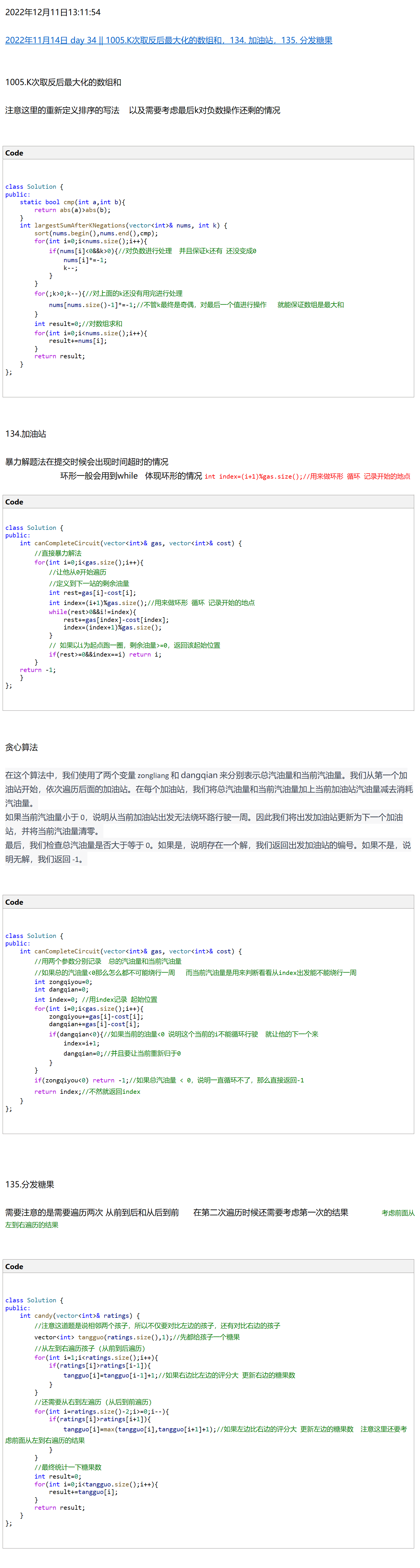 【onenote笔记迁移||C++学习】2022年12月11日 day 34 || 1005.K次取反后最大化的数组和,134. 加油站,135. 分发糖果