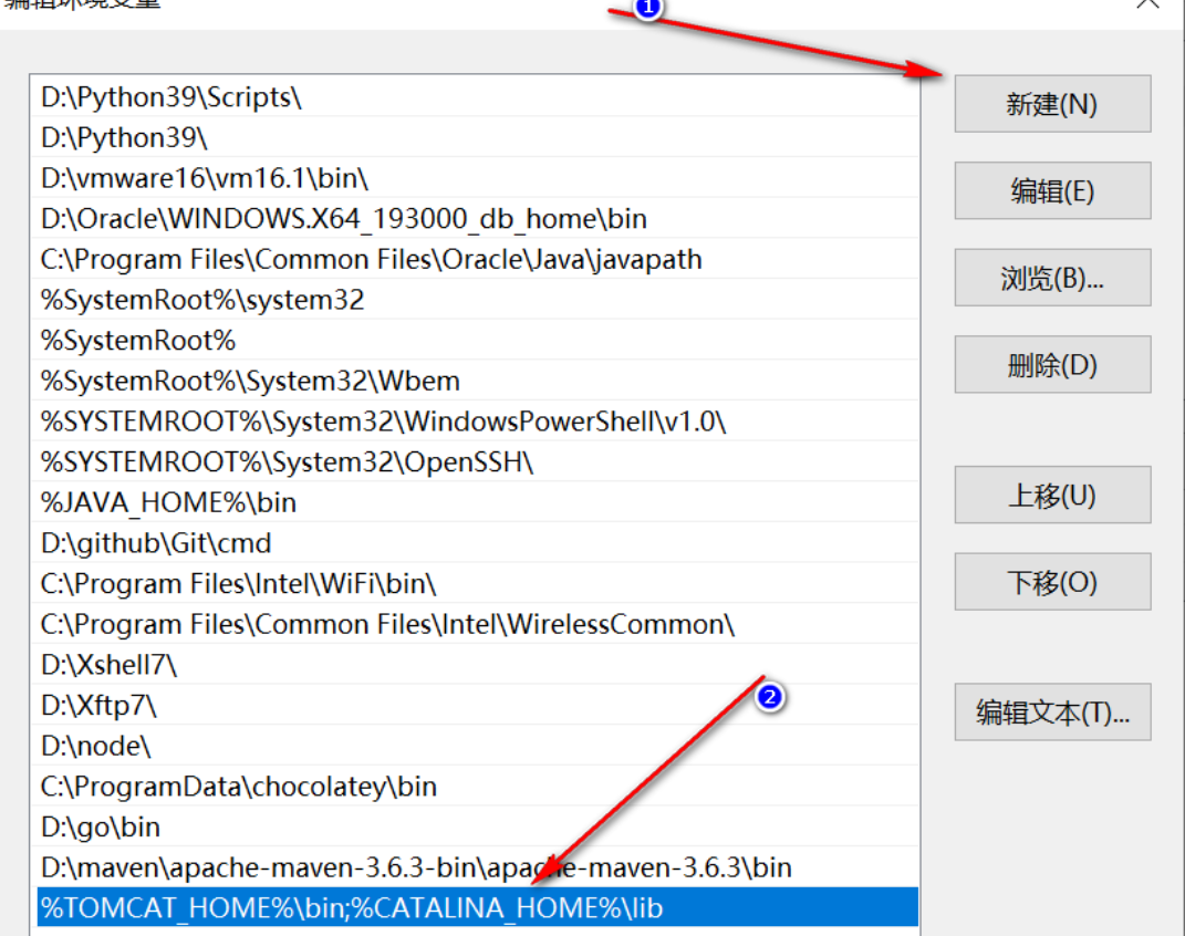 在下载好tomcat,并解压后,同样的需要设置环境变量,如下:
