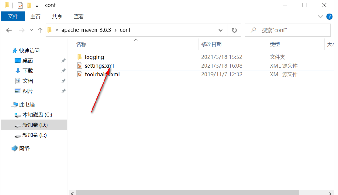 进入maven安装目录的conf目录,然后打开setting.xml