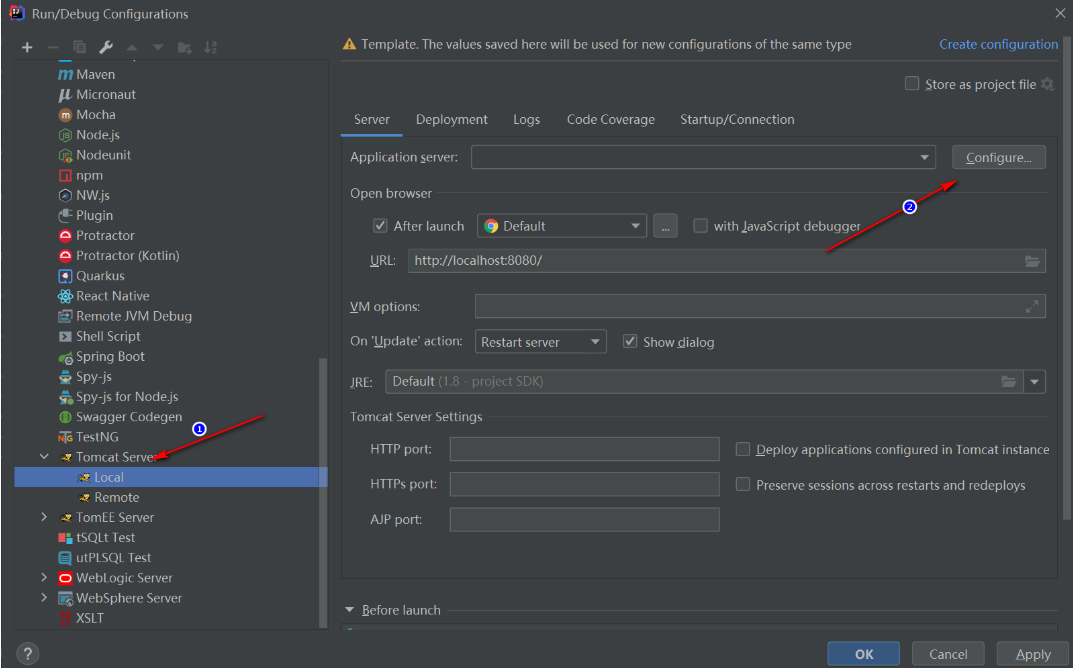 然后选择:Tomcat Server->Local