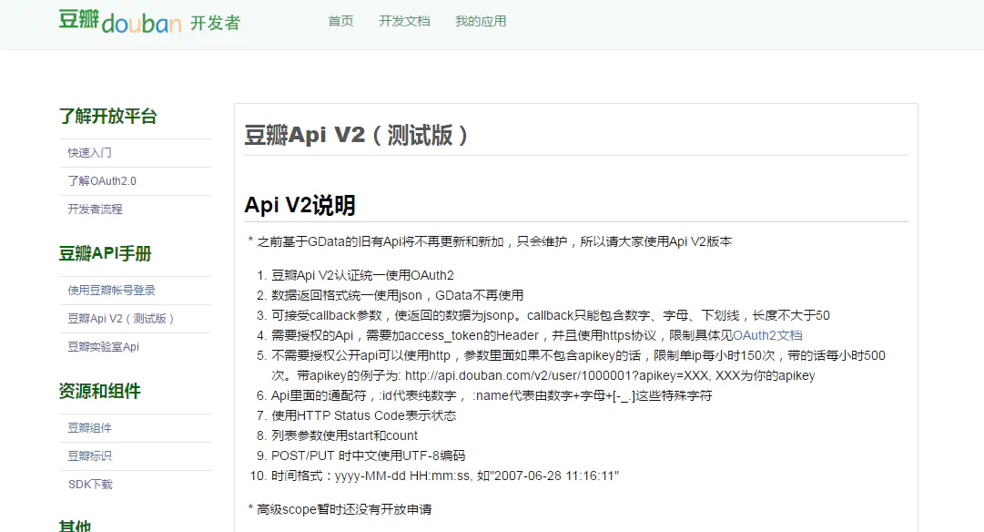 网址:https://developers.douban.com/wiki/?title=api_v2