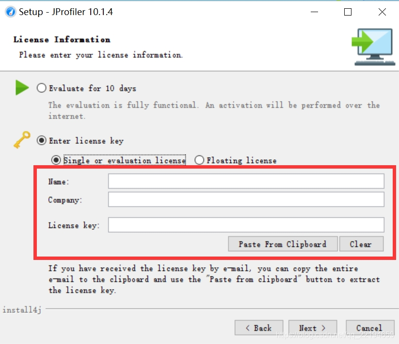 这里他会让你输入注册码,不输入注册码只有10天试用时间。注册码网上有,随便去弄一个。