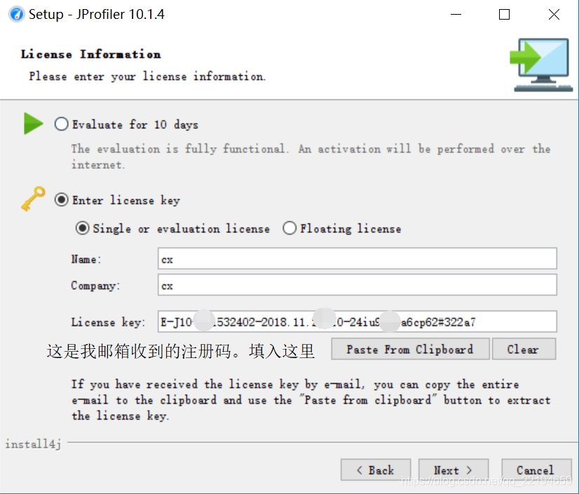 填入信息,然后填邮箱,这个邮箱他会发送一个注册码给你。然后去邮箱复制注册码填入进去。