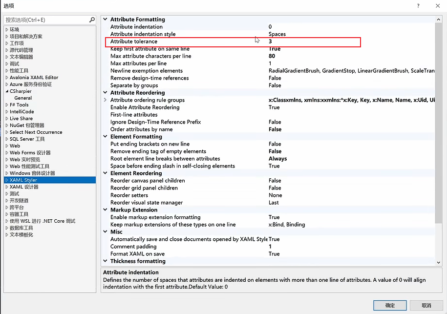 XAML Styler for Visual Studio 2022:格式化xml的插件,可单独配置