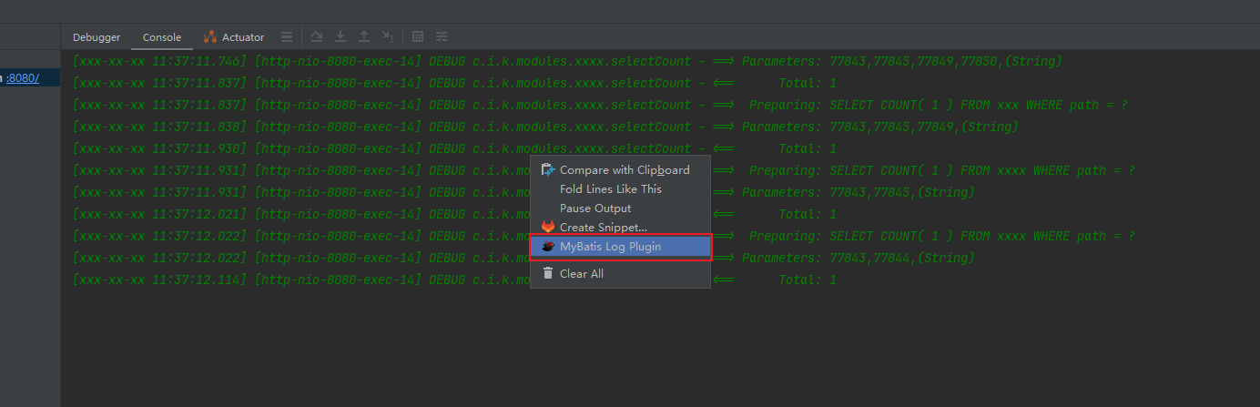 IdeaConsole控制台sql输出MyBatisLogFree插件不输出sql解决方式