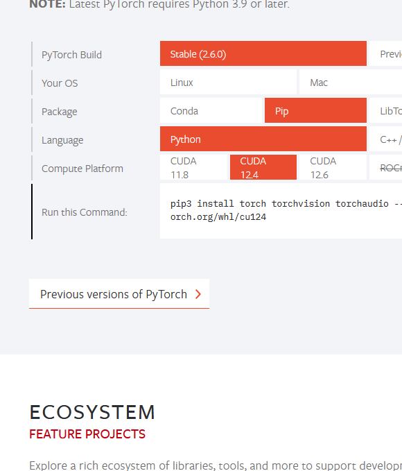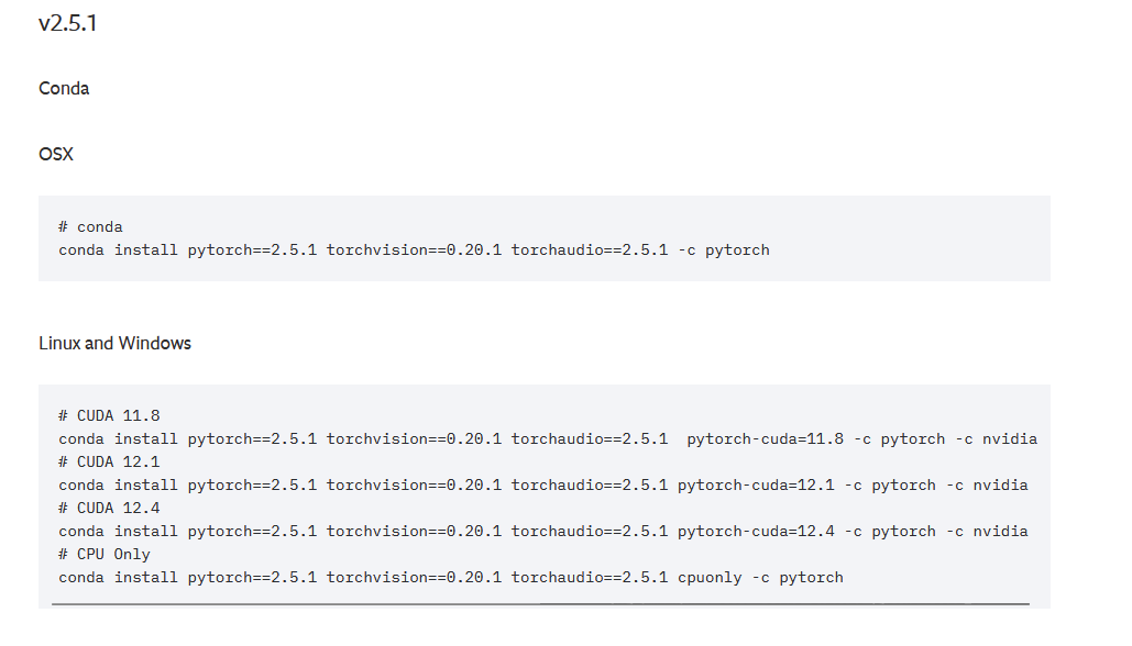 在pytorch官网找到了一个“Previous versions of PyTorch”按钮