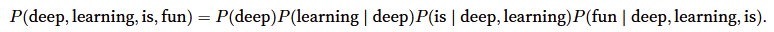 通常,涉及一个、两个和三个变量的概率公式分别被称为 一元语法(unigram)、二元语法(bigram)和三元语法(trigram)模型