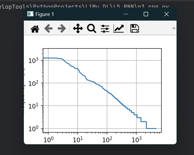 freqs = [freq for token, freq in vocab.token_freqs] d2l.plot(freqs, xlabel='token: x', ylabel='frequency: n(x)', xscale='log', yscale='log') plt.show()