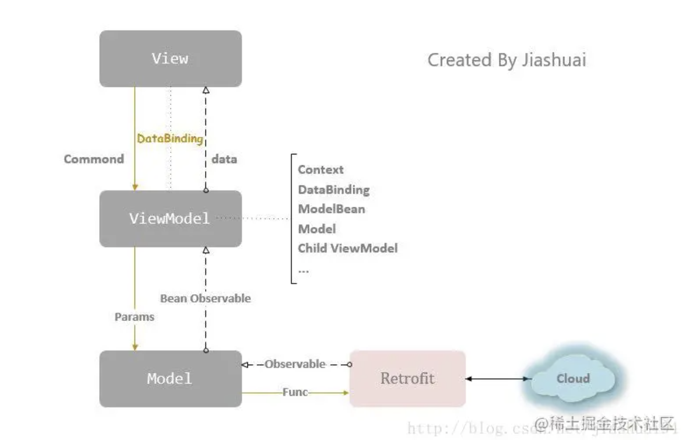 MVVM模型全称是(Model-View-ViewModel),它与我们熟知的MVC模型主要差别在于Controller和ViewModel的差异。MVC模型(Model-View-Controller)是通过Controller直接更新View界面的DOM元素。