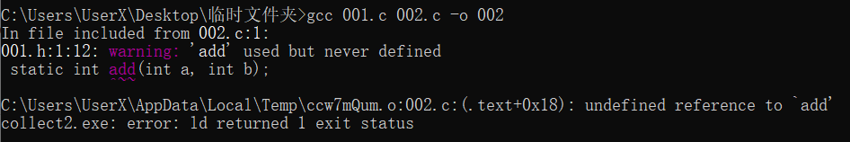 但当去掉001.h和001.c里面的“static”关键字后,编译成功了