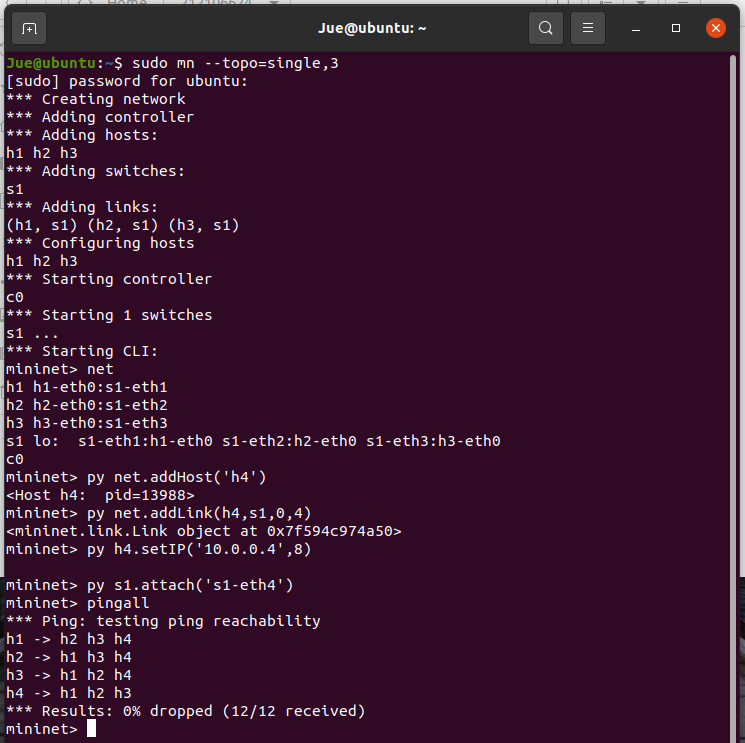 - 能够使用Mininet交互界面管理SDN拓扑;