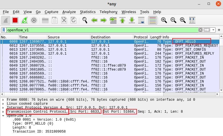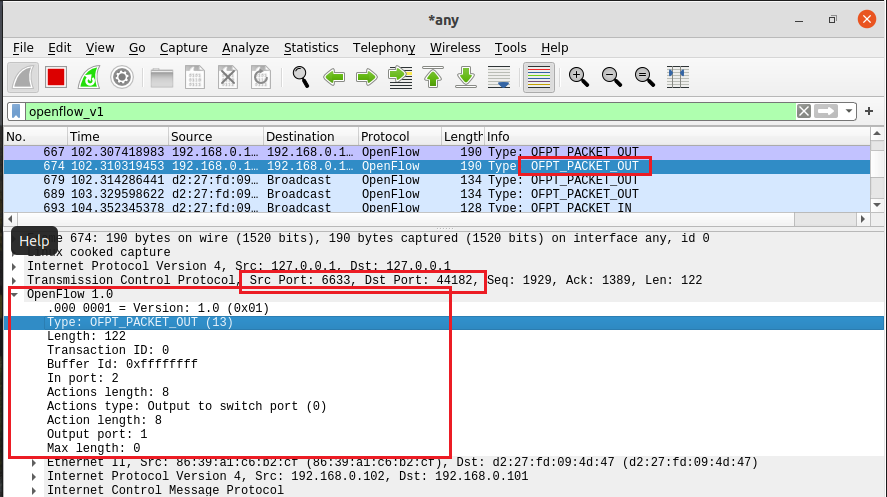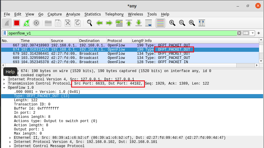 - OFPT_PACKET_OUT, 源端口6633(请按照我给你的action进行处理) -> 目的端口36424