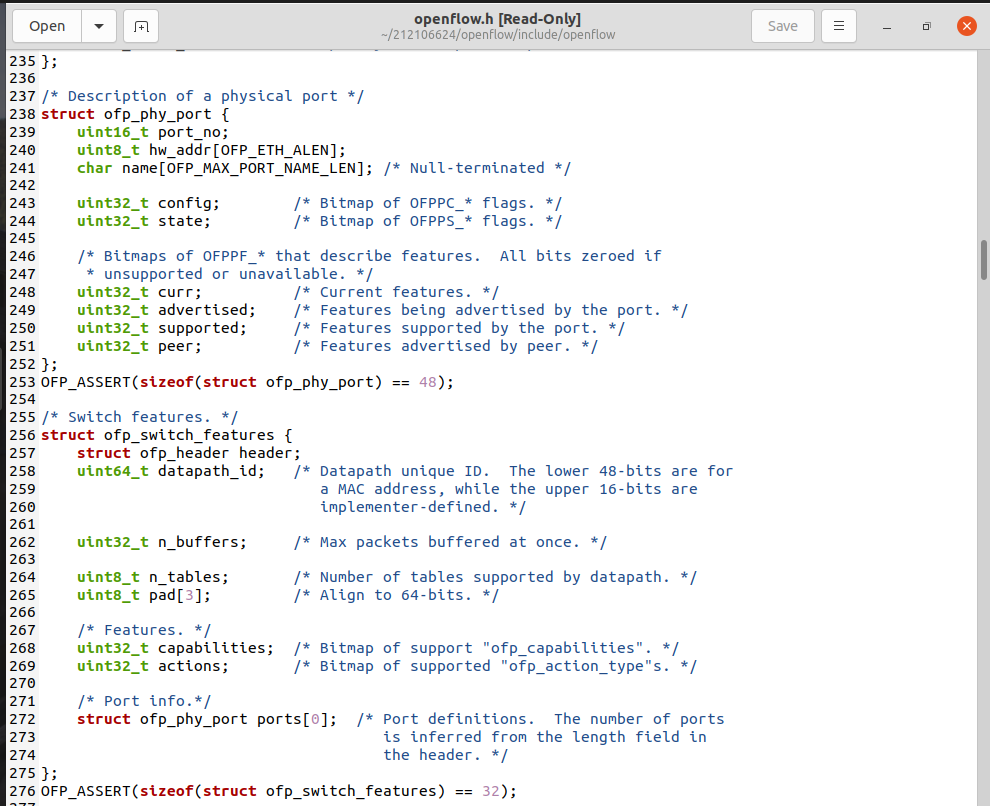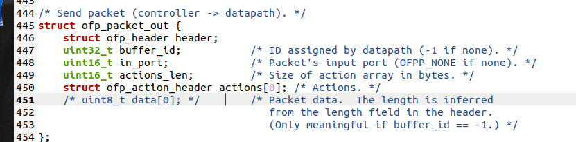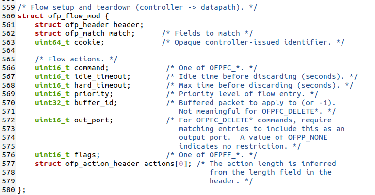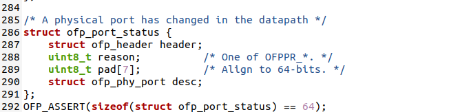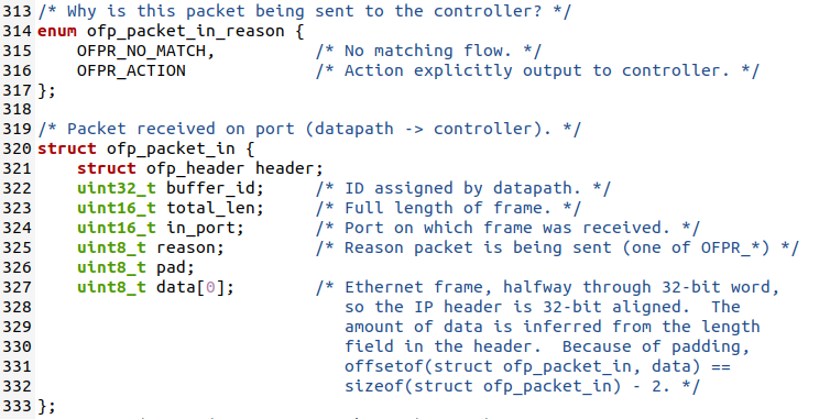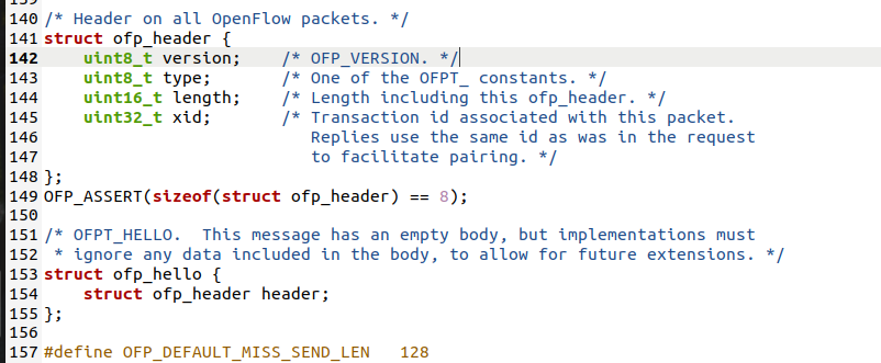 将抓包结果对照OpenFlow源码,了解OpenFlow主要消息类型对应的数据结构定义。