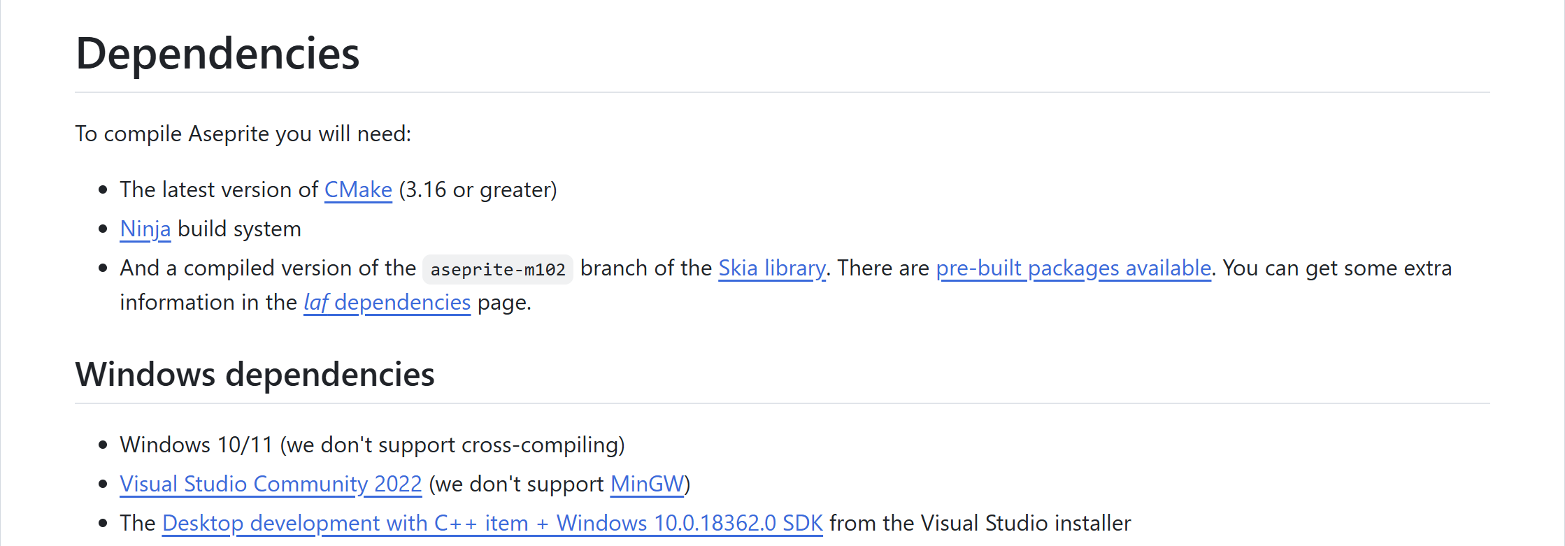 这里我查了些教程,比较不错的还是B站的这个视频:【保姆级良心教程】程序员教你15分钟无门槛学会无痛编译并汉化Aseprite最新版本1.2.40 授人以鱼不如授人以渔。