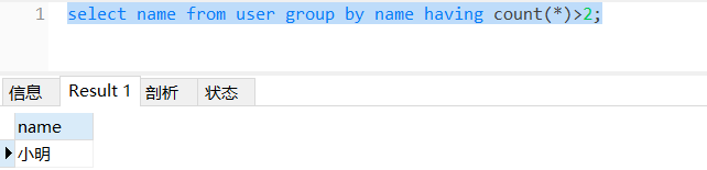 Sql: select name from user group by name having count(*)>2;