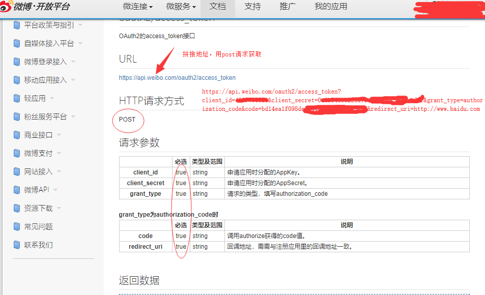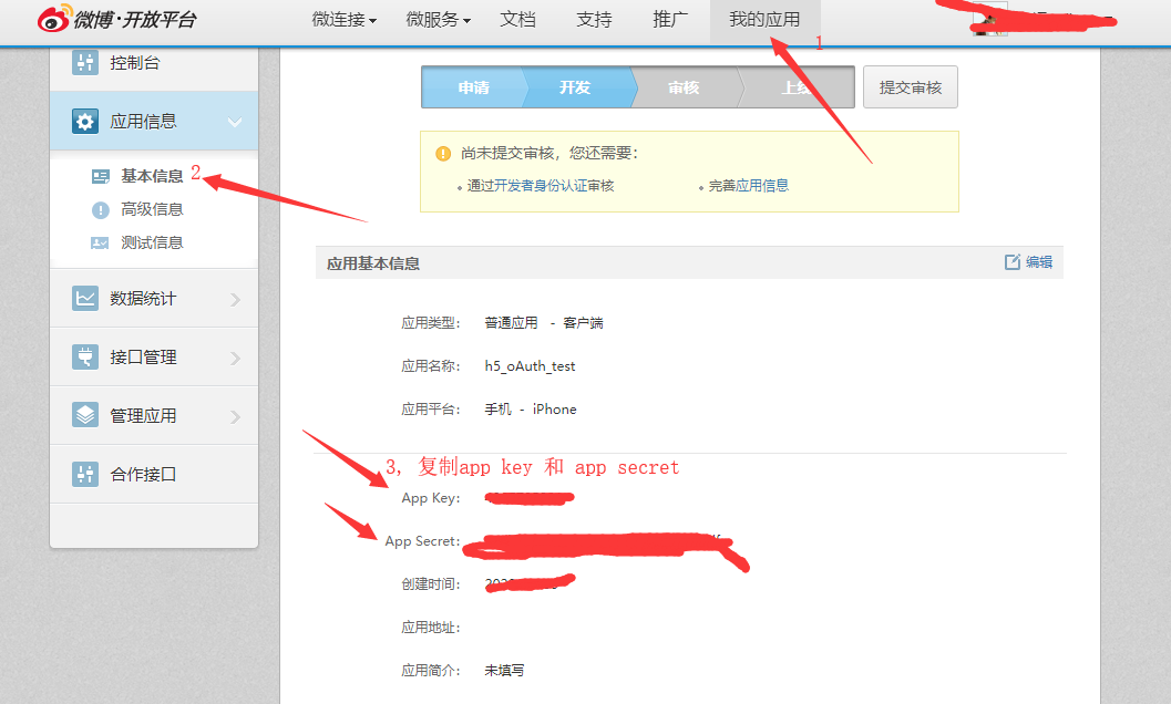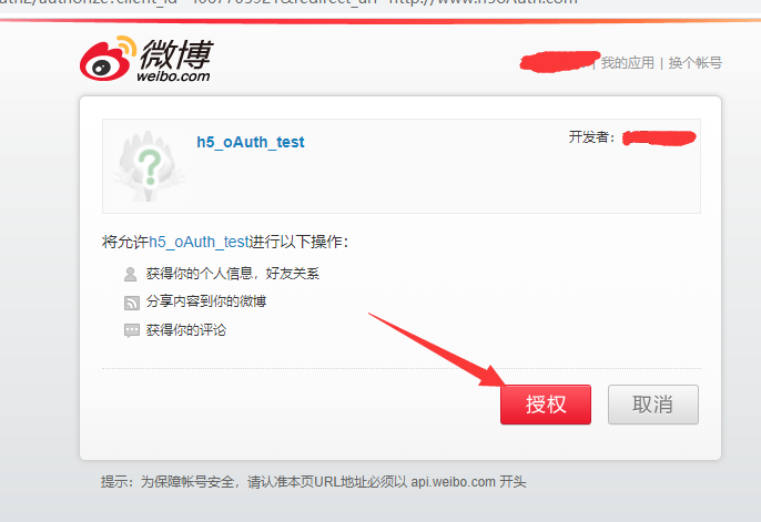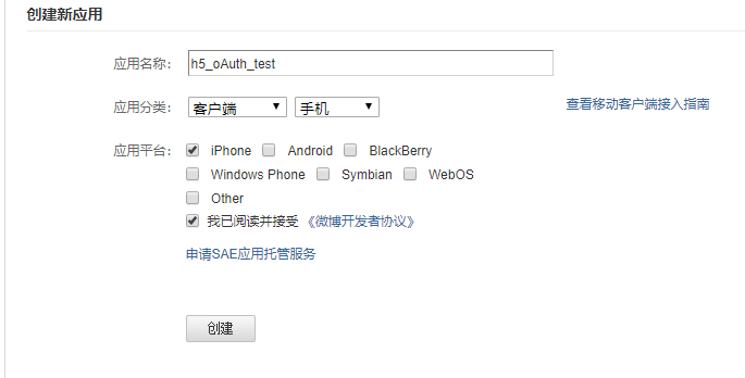// OAuth(开放授权)是一个开放标准,允许用户授权第三方移动应用访问他们存储在另外的服务提供者上的信息, // 而不需要将用户名和密码提供给第三方移动应用或分享他们数据的所有内容。 // 新浪oAuth授权 // 1.https://open.weibo.com/ // 2.https://open.weibo.com/development/mobile // 3.立即接入,创建新的应用 //第一次授权也许需要邮箱验证身份
