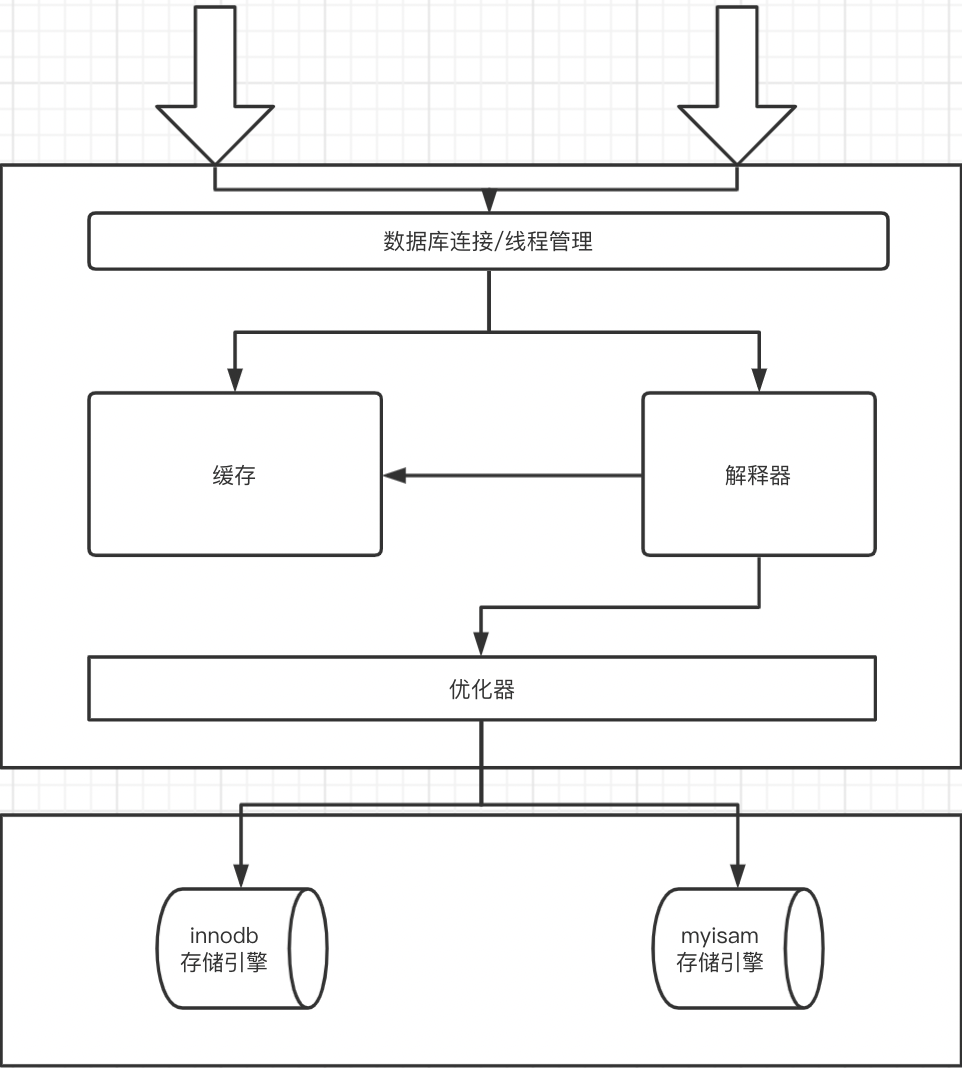 服务层对数据库连接及用户权限验证及sql语句校验的过程,最终对符合要求的sql优化解析交给存储引擎执行。