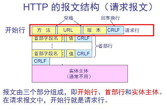 在HTTP中,一个完整的请求消息是由请求行,请求头和实体内容三部分组成的,其中每部分都有各自不同的作用。