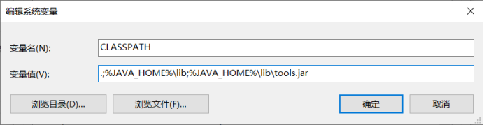 ④新建CLASS_PASS变量: .;%JAVA_HOME%\lib;%JAVA_HOME%\lib\tools.jar (注意最前面的“.”是代表本地的意思)