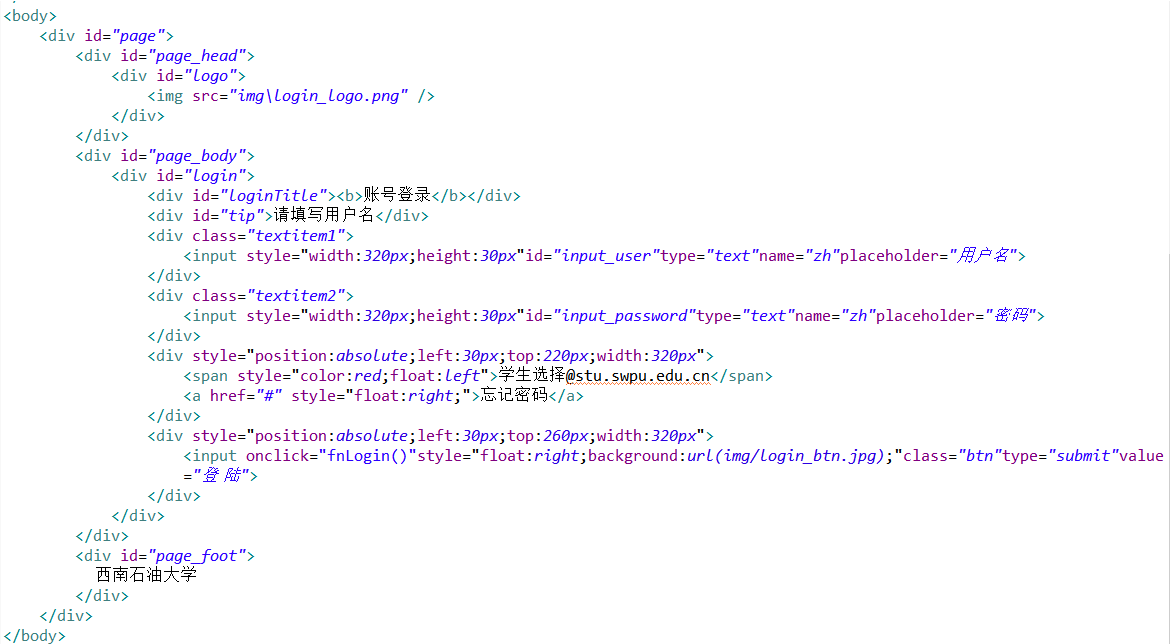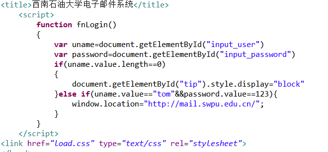 其中增加JS代码,可以静态验证用户名密码是否为空,且当输入用户名tom,密码123的时候可以跳转到另一个页面。