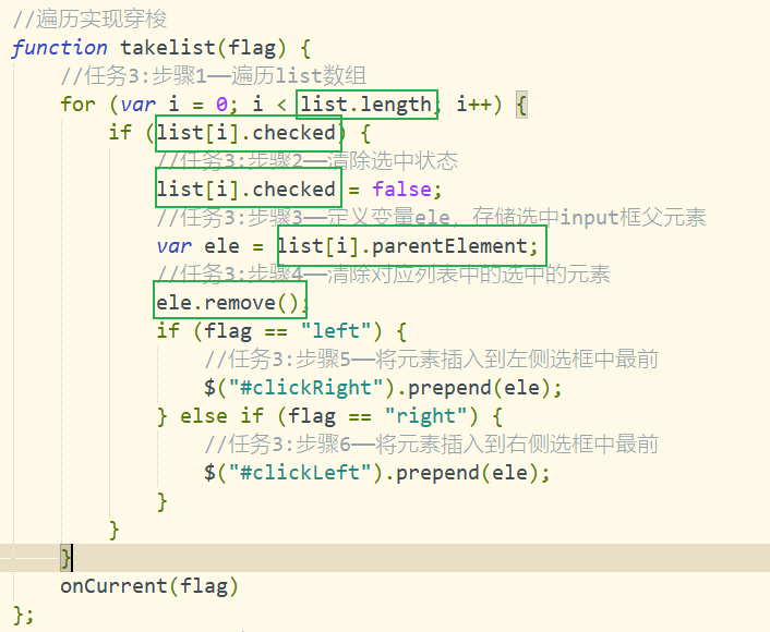 //任务3:步骤6——将元素插入到右侧选框中最前