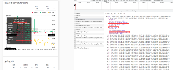 爬取最近30天内比特币价格、总爆仓金额、各大交易所总爆仓金额