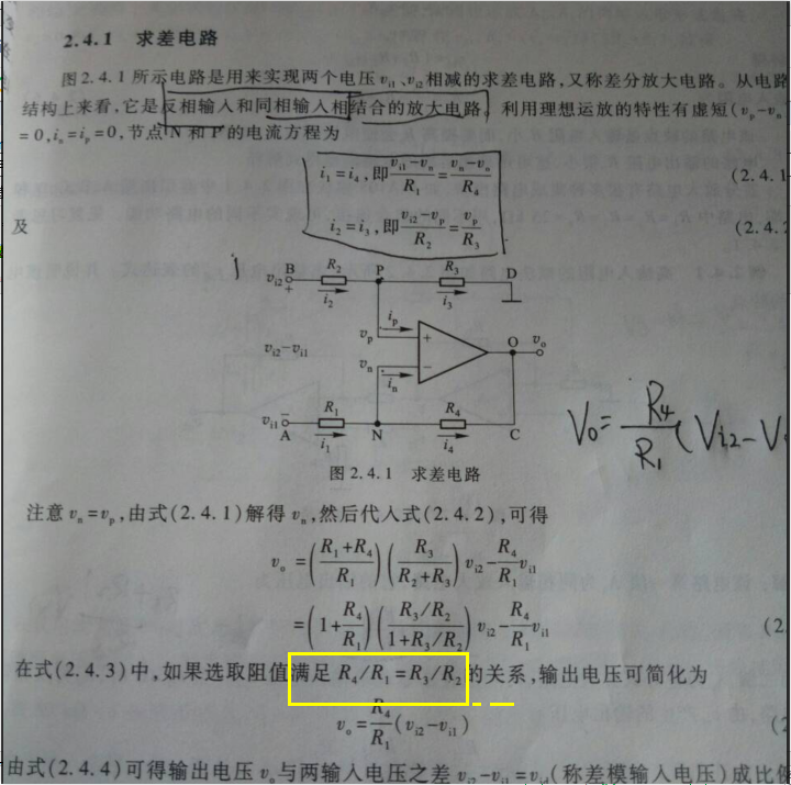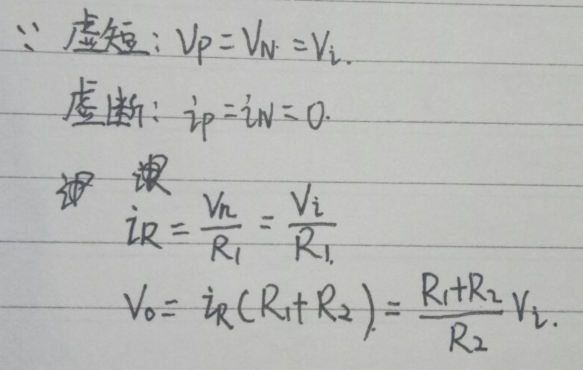 2.同向与反向电路所在电阻成比例,可以化简为反向电路电阻之比与两项输入之差的乘积