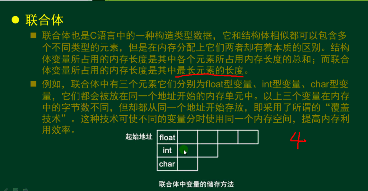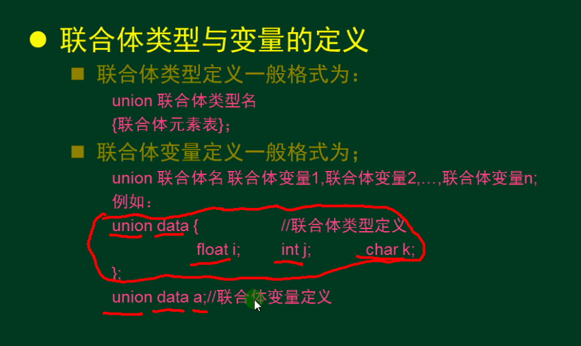 1 #include <stdio.h> 2 #include <string.h> 3 4 union Data 5 { 6 int i; 7 float f; 8 char str[20]; 9 }; 10 11 int main( ) 12 { 13 union Data data; 14 15 data.i = 10; 16 data.f = 220.5; 17 strcpy( data.str, "C Programming"); 18 19 printf( "data.i : %d\n", data.i); 20 printf( "data.f : %f\n", data.f); 21 printf( "data.str : %s\n", data.str); 22 23 return 0; 24 }