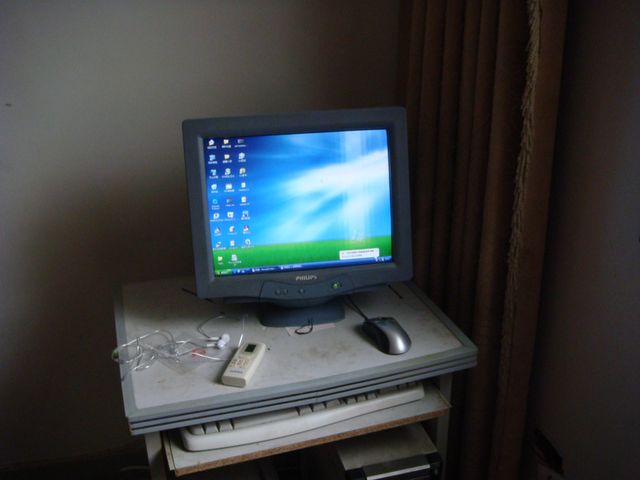 屋内的电脑,配置很好。还有独享的2兆宽带。在线看电影和玩网络游戏绝对没有问题