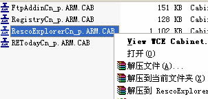 有些手机软件下载下来后可以发现其后缀为CAB(多为单一的文件),此类文件如果在PC上双击将无法进行安装。当我们用右键点击这些文件的时候,可以发现它们可以通过RAR解压缩的方式打开。