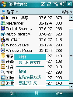 首先利用PPC手机内置的资源管理器找到Explore.exe文件(程序的可执行文件),用触笔长点,在弹出菜单中选择复制。然后打开根目录下Windows文件夹,再依次打开““开始”菜单”文件夹中的“程序”文件夹。然后在“程序”文件夹中的空白处长点,在弹出的菜单中选择“粘贴快捷方式”即可。当然你还可以利用重命名功能,对此快捷方式进行命名。