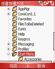 创建快捷方式的原理同PPC一样,我们先利用IA File Manager找到需要创建快捷方式的可执行文件。然后执行“菜单-文件-创建新快捷”,接着打开Windows文件夹下的StartMenu文件夹,点击左键完成即可。